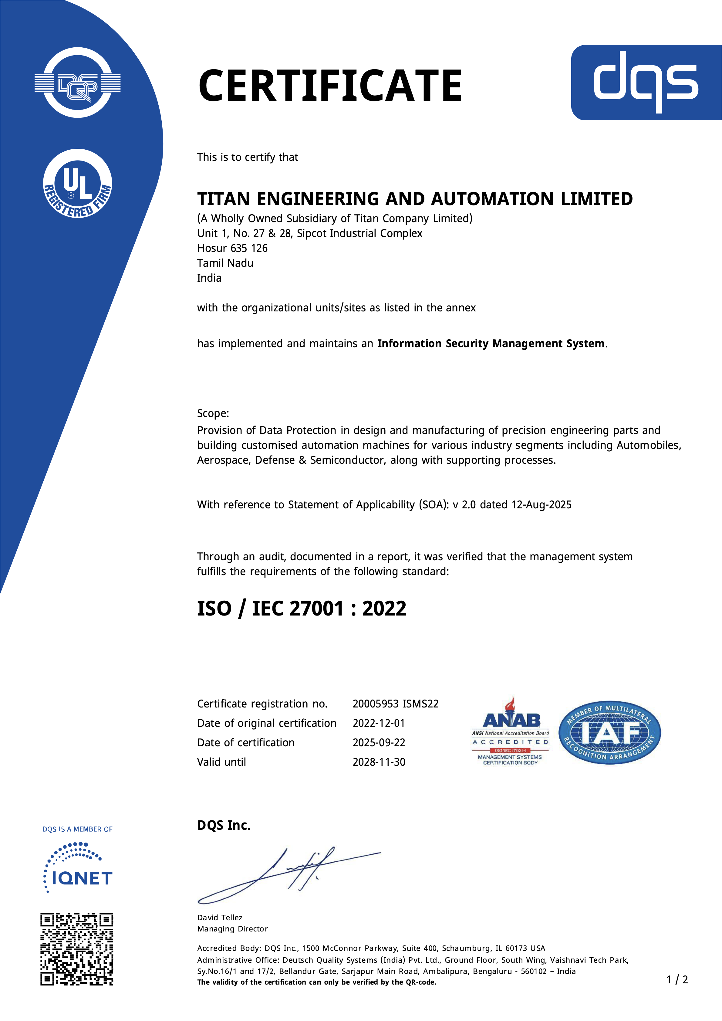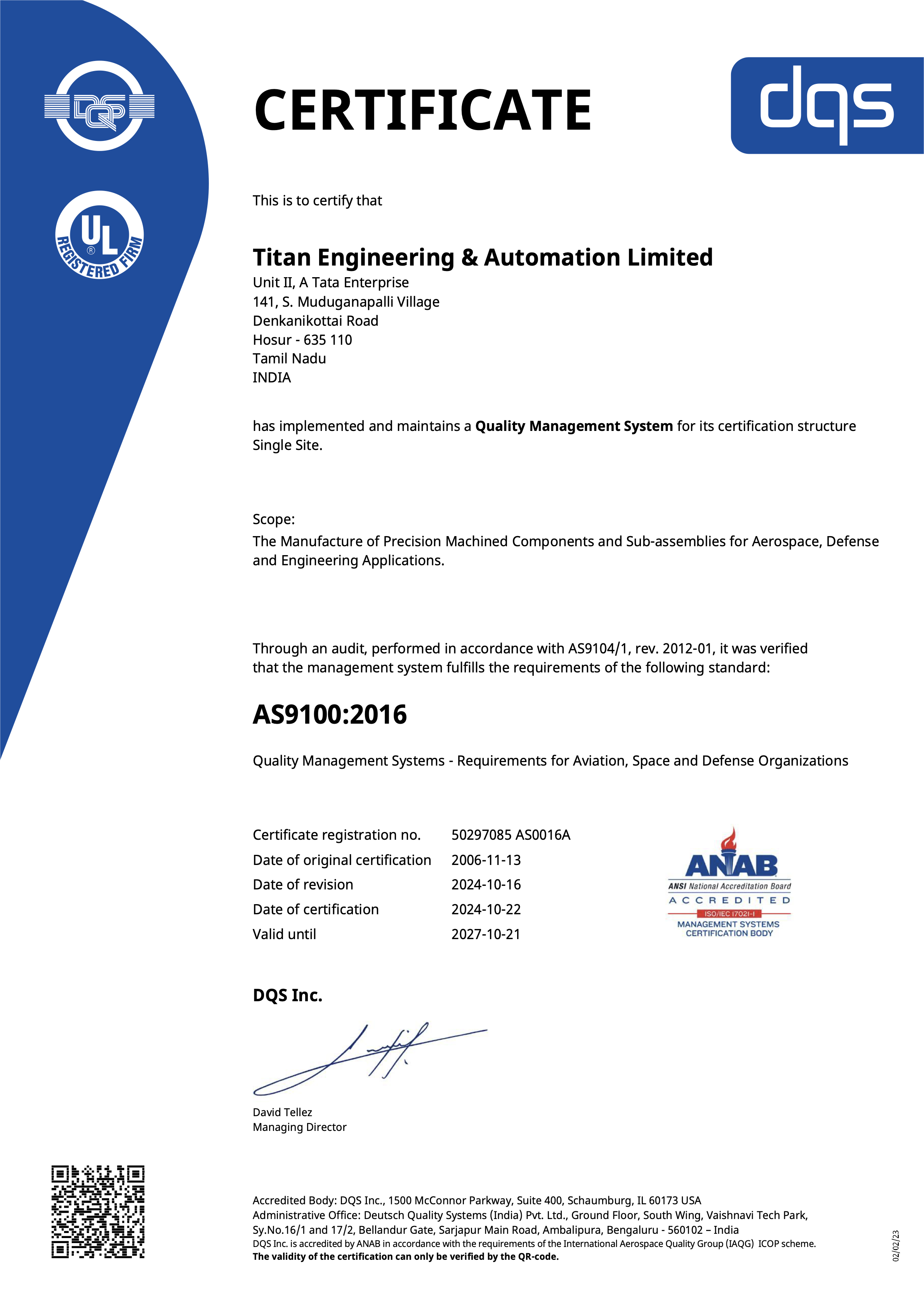 The Aerospace & Defence business builds precision components and sub-assemblies catering to the Global Aerospace and Defence customers